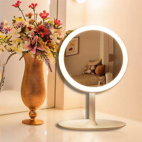 - Elevate your beauty routine with the SOGA 26cm White Round Smart LED Makeup Bedroom Table Vanity Mirror, designed to provide precision and style in your makeup application.