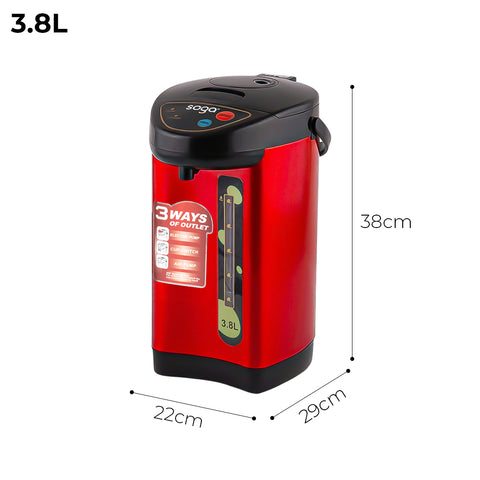 SOGA 2X 3.8L Red Stainless Steel Electric Thermal Pot Dispenser with 3 Dispensing Modes