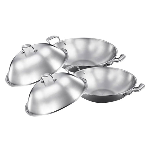 - 2 X SOGA 18/10 Stainless Steel Wok with Lid