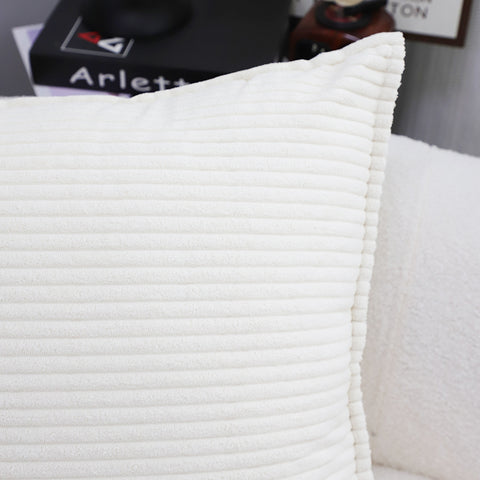 SOGA 2X 50cm Beige Throw Pillow Warm Wabi-sabi Striped Corduroy Square For Home Decor