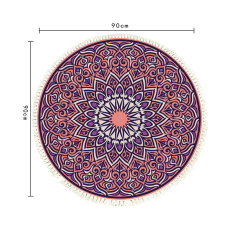 SOGA 2X 90cm Purple Mandala Round Carpet for Living Room Bedroom Anti-slip Doormat, Home Decor