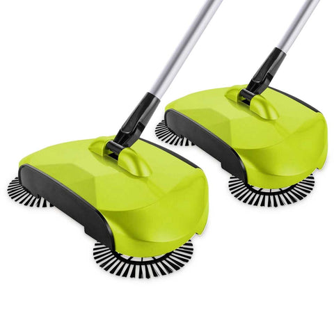 SOGA 2x Hand Push Sweeper Broom Lazy Auto Spin Household Cleaning No Electricity Green