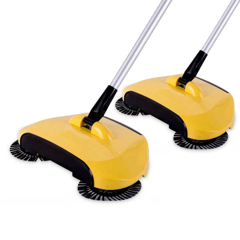 SOGA 2x Hand Push Sweeper Broom Lazy Auto Spin Household Cleaning No Electricity Yellow