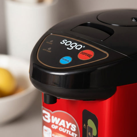 Enjoy a constant supply of hot water with the SOGA 3.8L Red Stainless Steel Electric Thermal Pot Dispenser, designed for homes, offices, and events. Built with a durable stainless steel exterior and a 304 stainless steel interior, it ensures long-lasting performance, excellent heat retention, and safe daily use. With three easy dispensing modes and energy-efficient heating, this thermal pot delivers effortless convenience for all your beverage needs.