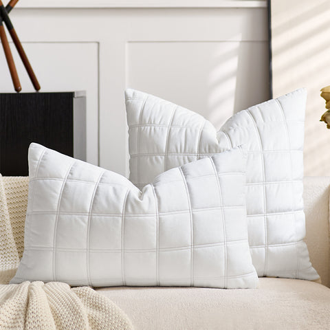 SOGA 30cm White Quilted Grid Pattern Decorative Throw Pillow