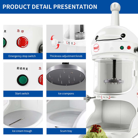 - Ideal for preparing snow ice, smoothies, frozen desserts, and icy drinks.