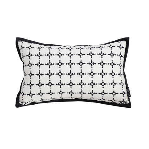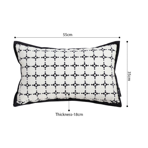 Refine your interiors with the SOGA 35x55cm White and Black Geometric Cushion. With a structured rectangular shape and bold black embroidery on a crisp white base, this cushion adds striking contrast to neutral spaces. Its thick 18cm fill offers soft, supportive comfort, whether you're relaxing, layering, or decorating. Clean lines, plush texture, and modern simplicity — this cushion is where function meets design.