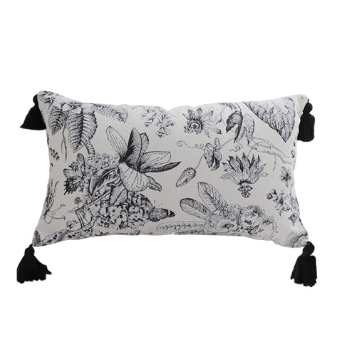 SOGA 35cm Throw Pillow Black and White Floral Print Elegant with Tassel Accents Home Decor