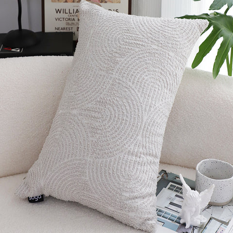 SOGA 35cm Throw Pillow Off White Lumbar Embroidered Decorative Cover Stitch for Home Decor