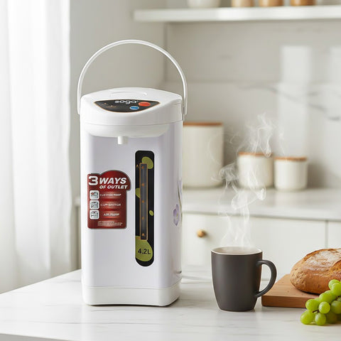 SOGA 4.2L White Plastic Exterior Electric Thermal Pot Dispenser with 3 Dispensing Modes