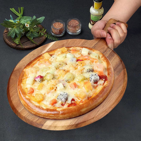 SOGA 42cm Round Premium Wooden Acacia Cutting Board Charcuterie Paddle
