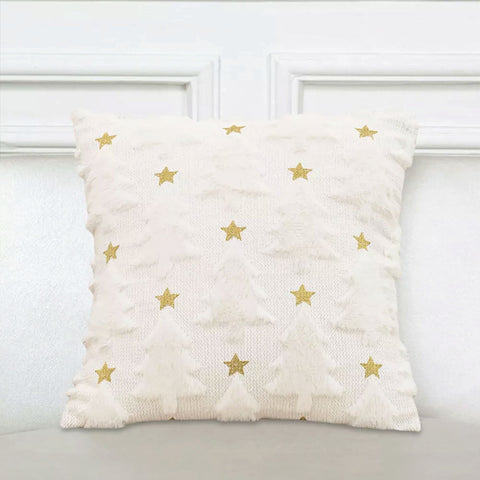 SOGA 45cm Celestial Cream Textured Gold Star Pattern Throw Pillow