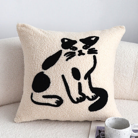 SOGA 45cm Off-White Cat Design Square Throw Pillow