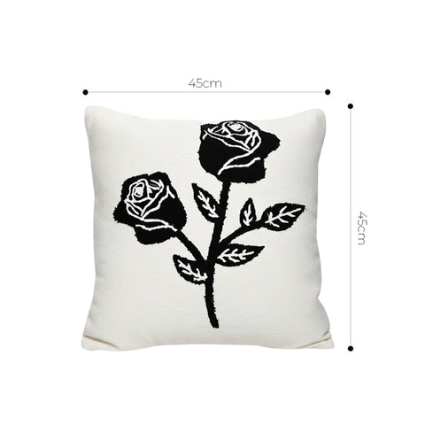 SOGA 45cm White Black Rose Floral Embroidered Throw Pillow