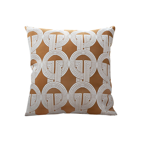 - Add a touch of elegance to your living space with Throw Pillow. Featuring a sophisticated brown circular chain jacquard design, this decorative square pillow effortlessly enhances the aesthetic of any room. Its high-quality craftsmanship and timeless style make it a versatile accent for sofas, beds, chairs, or cozy nooks.