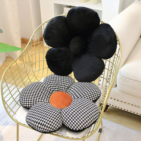 SOGA Black Flower Cushion Shaped for Floor and Sitting Throw Pillow